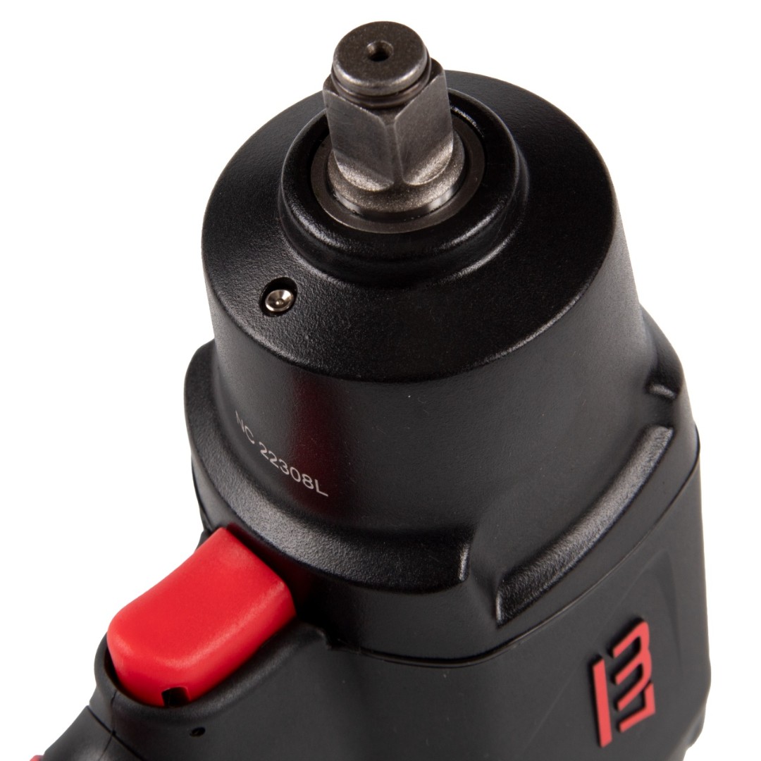 Корпус гайковёрта – прочный алюминиевый сплав. Эргономичная рукоятка гайковёрта в сочетании с отличной сбалансированностью позволяет надёжно держать инструмент в руке во время работы.