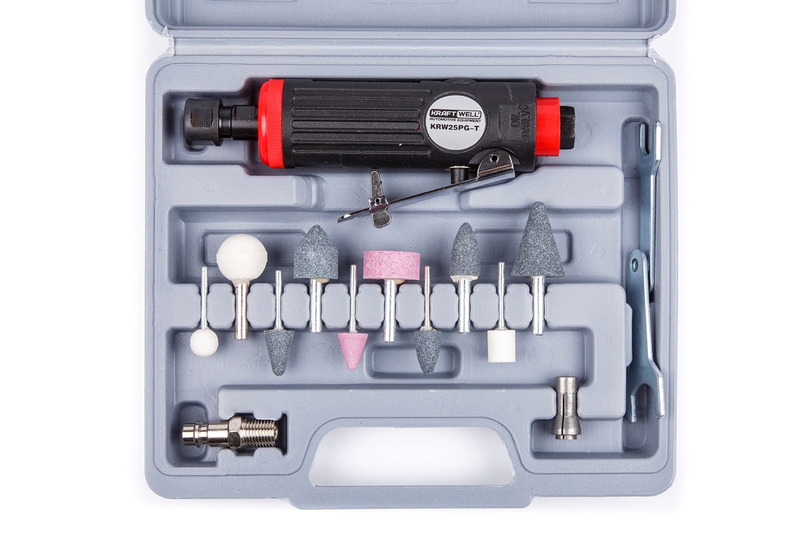 Пневматическая бормашинка с набором насадок, в кейсе KraftWell KRW25PG-T характеристики