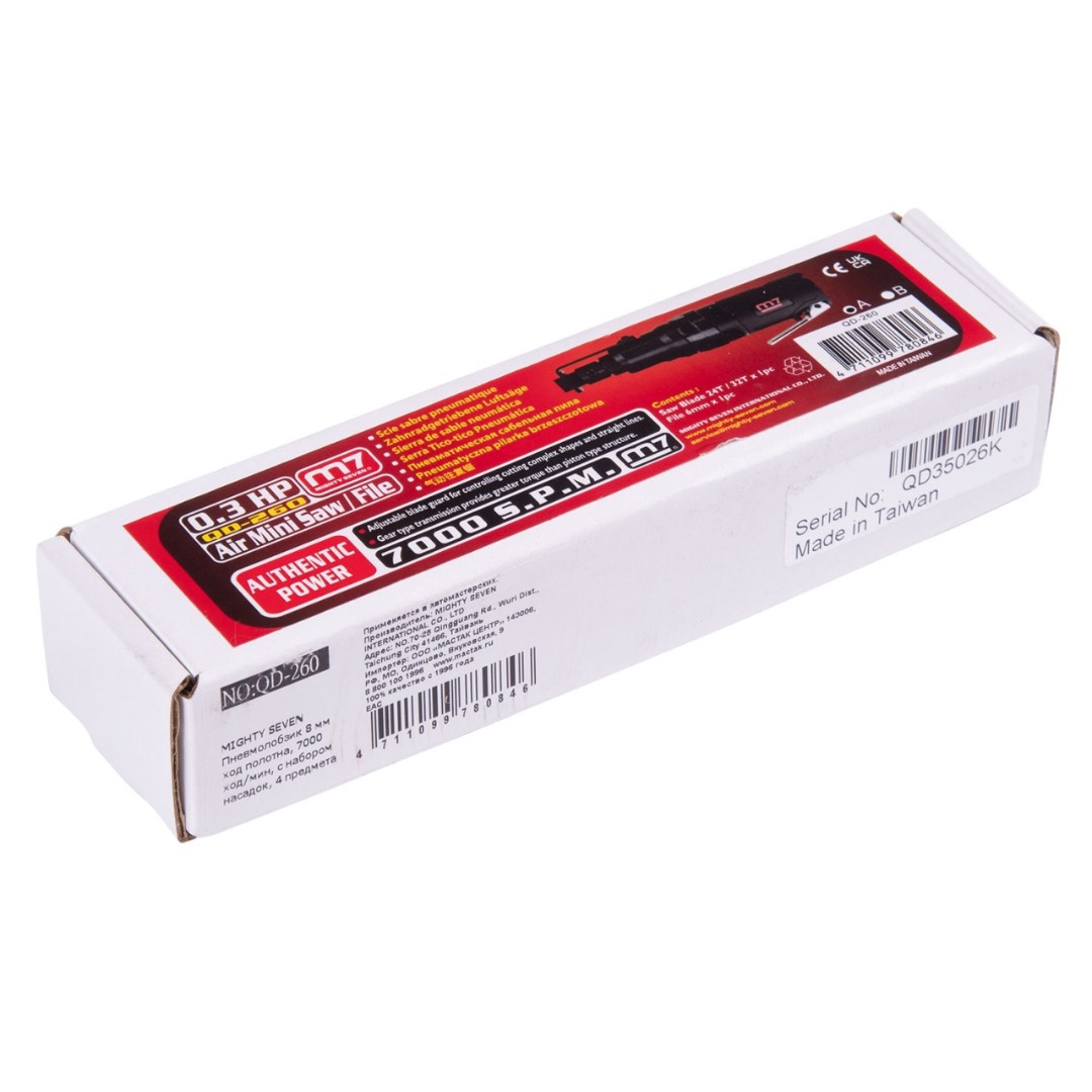 Пневмолобзик 8 мм ход полотна, 7000 ход/мин, с набором насадок, 4 предмета mighty seven qd-260