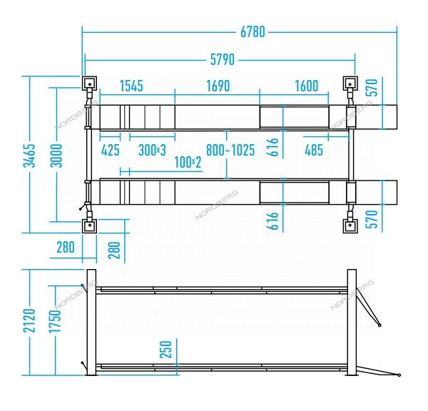 Подъемник четырехстоечный 5 т, без траверсы, для сход-развала, электростопоры, Nordberg 4450J_EB характеристики