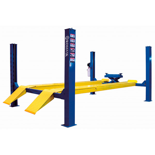 Подъемник четырехстоечный электрогидравлический ROSSVIK V4-4.5 г/п 4,5т, (c ручной траверсой г/п 2т, без поворотных кругов) для обслуживание легковых автомобилей и легких грузовиков.