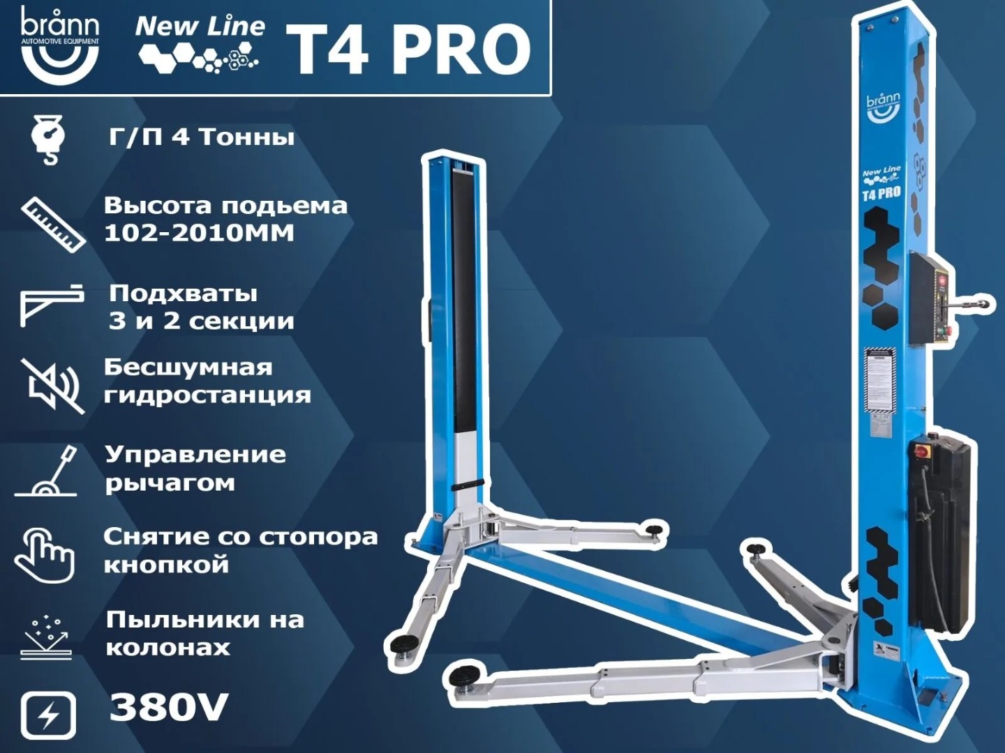 Электрогидравлический двухстоечный подъемник г/п 4 т. Brann Т4 PRO NEWLINE характеристики