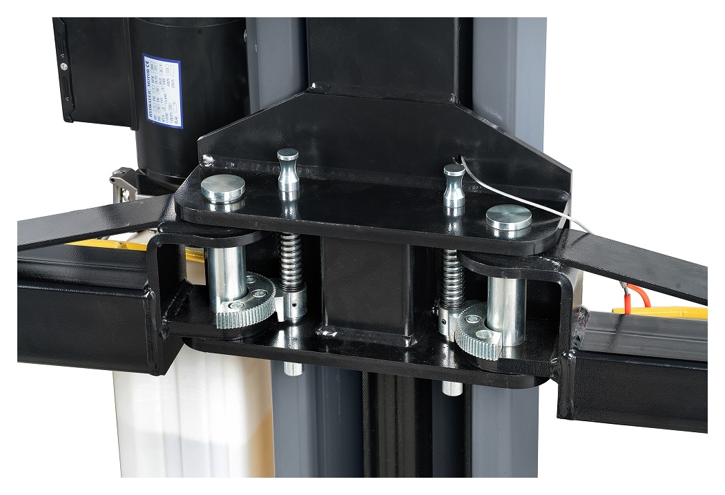 Двухстоечный электрогидравлический подъемник с нижней синхронизацией KRAFTWELL грузоподъемностью 4000 кг предназначен для подъема легковых автомобилей, внедорожников и легкого коммерческого транспорта с короткой колесной базой. За подъем автомобиля отвечают два гидравлических цилиндра с цепным приводом каретки. Такой тип привода уменьшает нагрузку на гидроцилиндры и обеспечивает долговечность их работы. Внутри колонн расположены каретки с поворотными лапами асимметричной конструкции, применяемые на подъемниках для американского рынка. Каретки снабжены нейлоновыми ползунами, обеспечивающими плавное перемещение внутри стоек. Простая и, в тоже время, надежная система механических стопоров со снятием с двух сторон обеспечивает безопасное удержание автомобиля в поднятом состоянии на протяжении всего времени ремонта. Габаритная высота подъемника составляет 2814 мм и позволяет устанавливать его в помещениях с высотой потолка от 3 метров и выше.