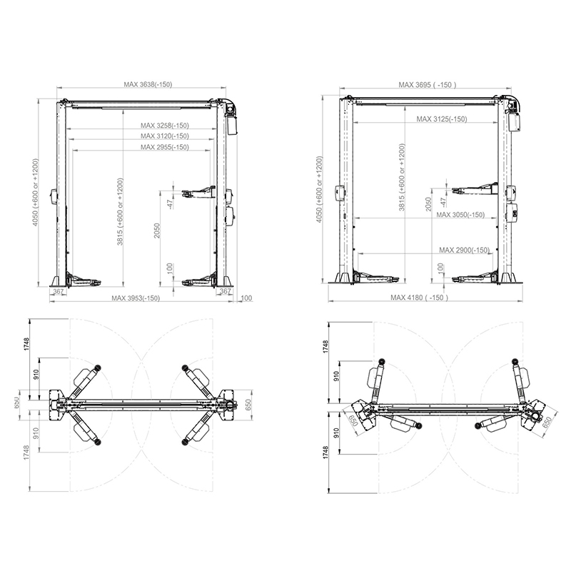 Благодаря особой конструкции верхней соединительной балки подъёмник можно монтировать, выставляя колонны симметрично или асимметрично. При монтаже, при необходимости, возможна установка колонн на 150 мм уже стандартной