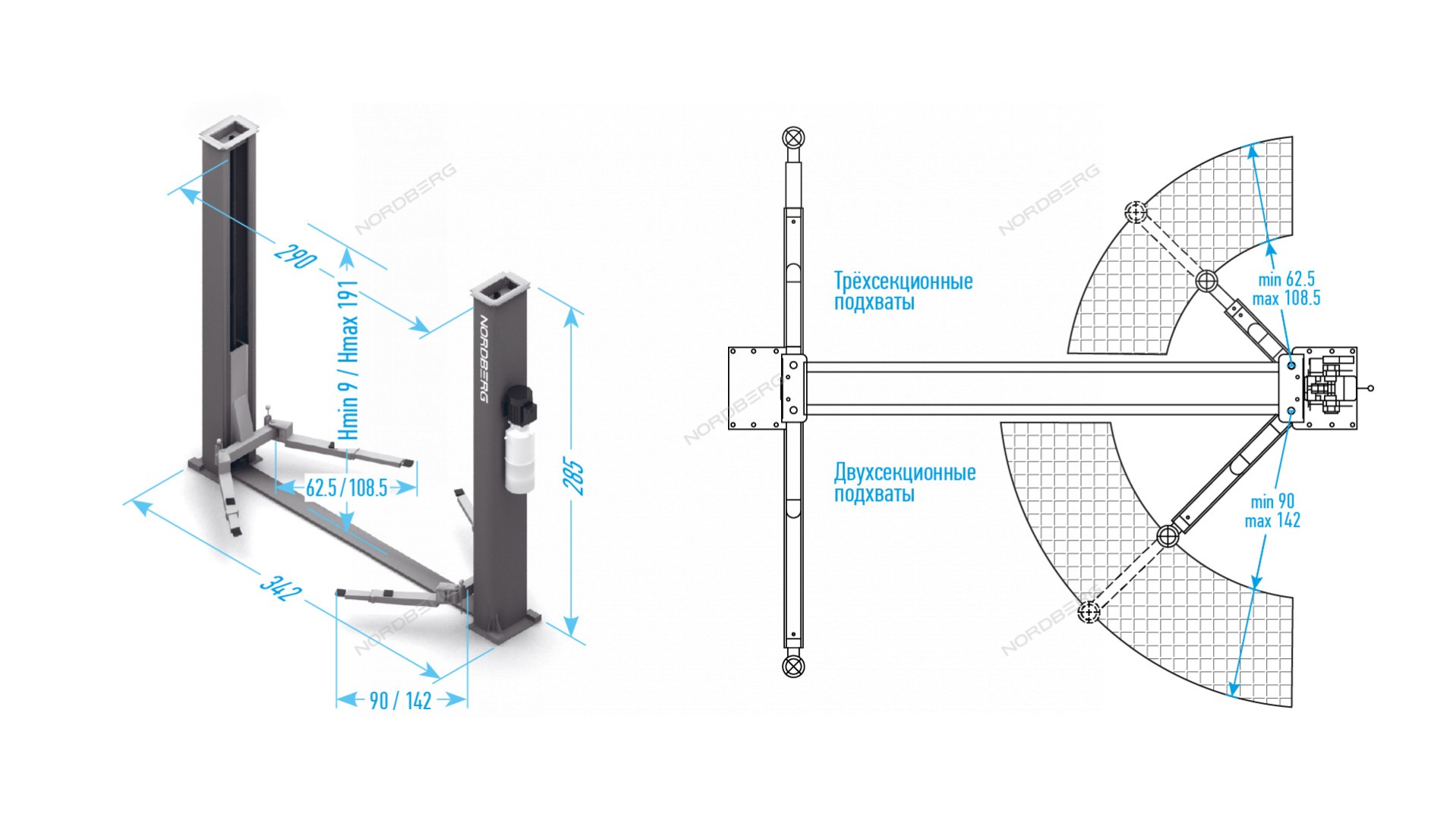 Электрогидравлический двухстоечный двухстоечный 4 т Nordberg N4120BE-4B_3+2_380 характеристики