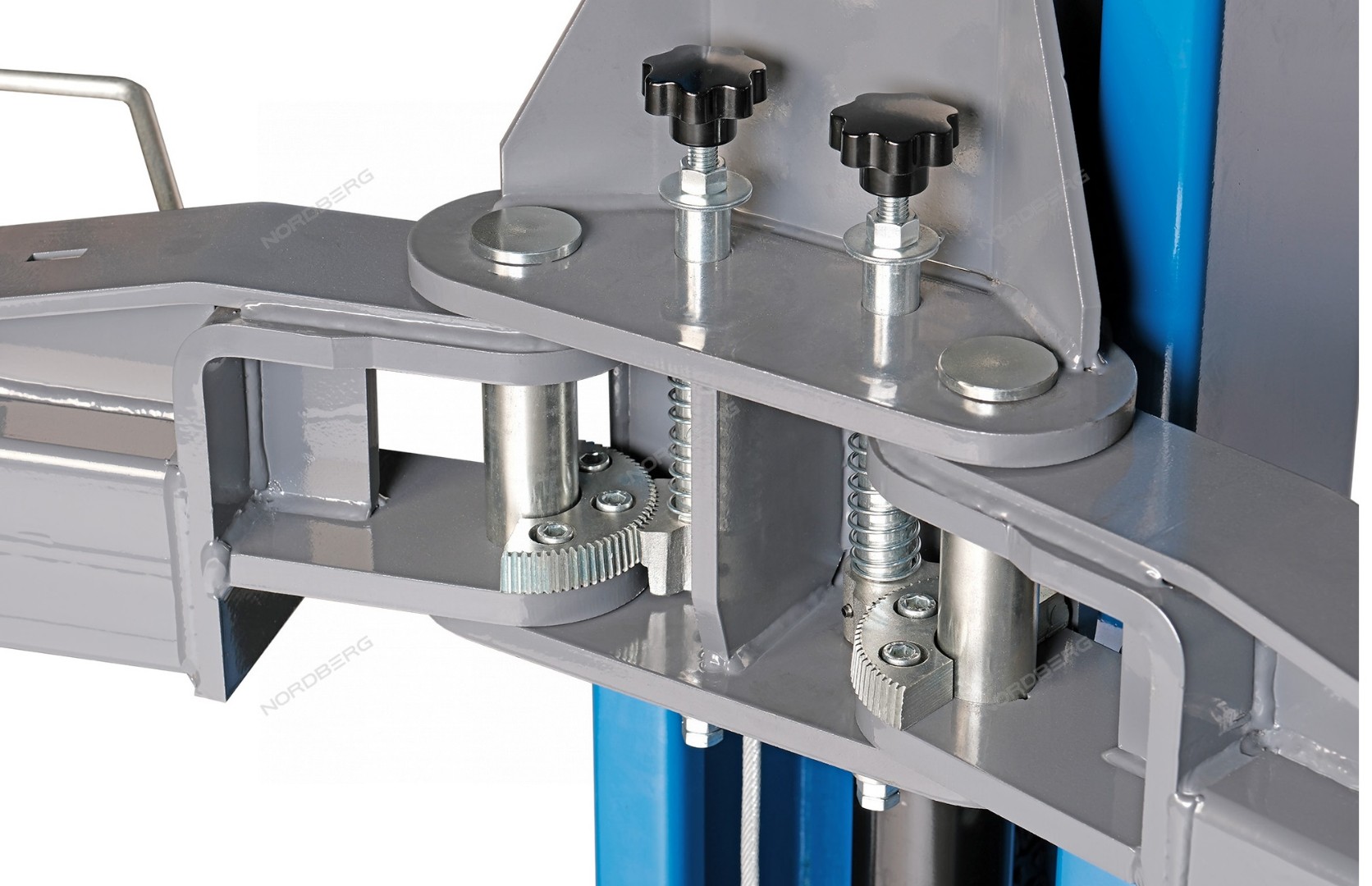 Подъемник 380V 2х стоечный 4т. с верхней синхронизацией (синий), снятие со стопоров с одной колонны NORDBERG N4122HM-4B