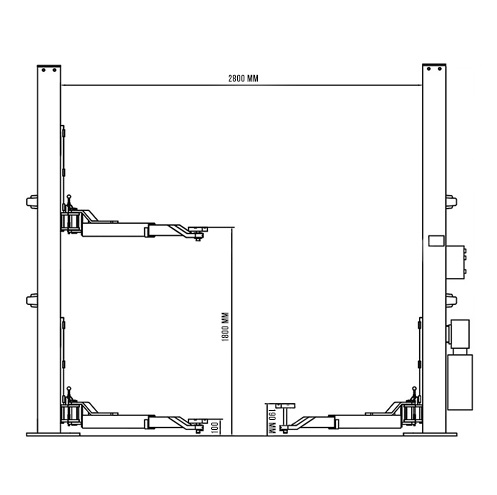 - ширина между стойками - 2800 мм, минимальная высота подхвата –100 мм;