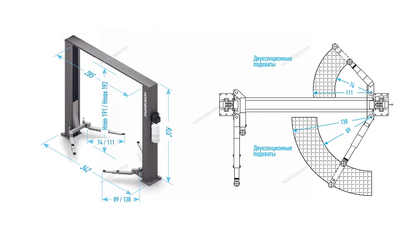 Электрогидравлический двухстоечный подъемник г/п 4 т NORDBERG N4121H-4T_380V характеристики