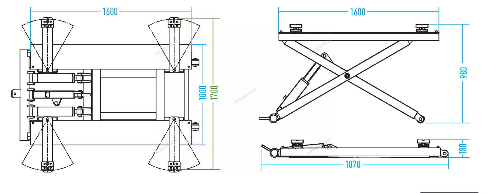 Ножничный подъемник мобильный, 3 т, 380 В NORDBERG N634-3B_380 характеристики