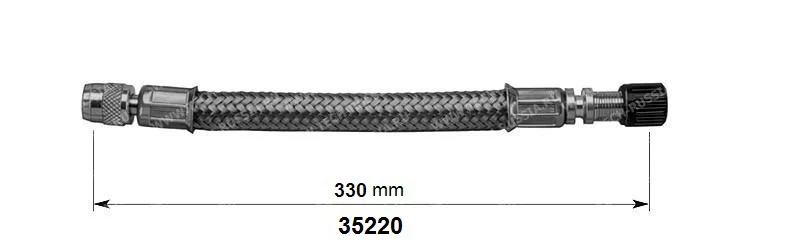 Резиновый удлинитель вентиля в металлической оплётке 35220 длиной 300 мм предназначен для подкачки внутреннего колеса на спаренных (сдвоенных) колёсах грузовиков, тягачей, самосвалов и другой техники,