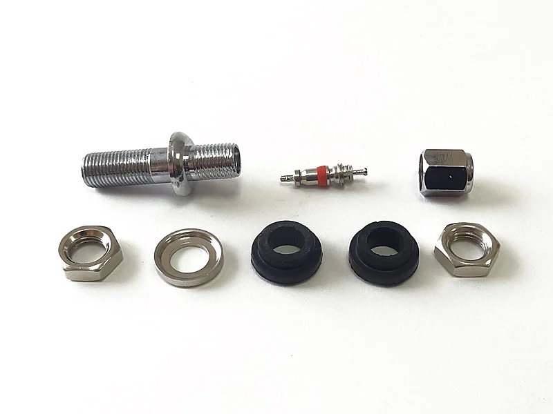 Металлический хромированный вентиль V-3 (TR33E) используется на легковых кованных и литых дисках, для накачки (подкачки) и измерения давления в шине. Вентиль состоит из металлического корпуса, двух гаек, шайбы, двух резиновых уплотнительных колец, защитного колпачка и золотника.