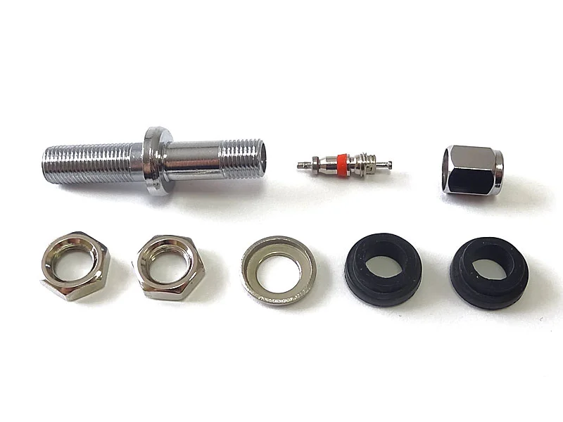Металлический хромированный вентиль V-4 (TR43E) используется на легковых кованных и литых дисках для накачки (подкачки) и измерения давления в шине. Вентиль состоит из металлического корпуса, двух гаек, шайбы, двух резиновых уплотнительных колец, защитного колпачка и золотника.