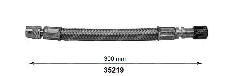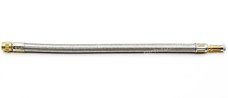 Резиновый удлинитель вентиля в металлической оплётке 35219 длиной 300 мм предназначен для подкачки внутреннего колеса на спаренных (сдвоенных) колёсах грузовиков, тягачей, самосвалов и другой техники,