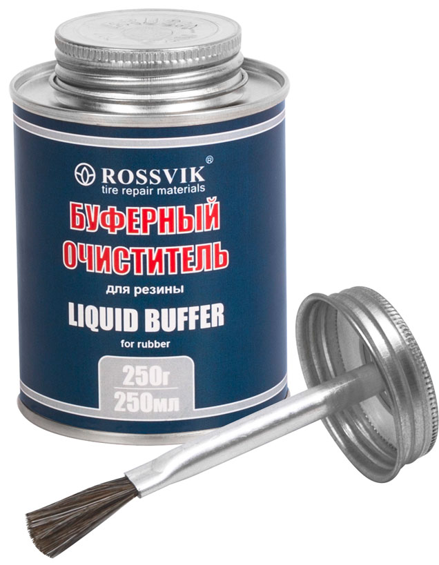 Буферный очиститель резины Rossvik применяется для обезжиривания и размягчения верхнего слоя резины на месте ремонта. После нанесения очистителя мокрый набухший слой резины легко счищается скребком. Буферный очиститель единоразово можно применять для разбавления термоклея и герметика бортов Rossvik в соотношении 1:10.