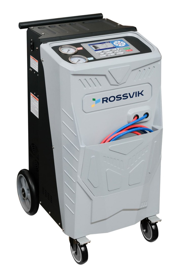 Автоматическая установка ROSSVIK AC1800 используется для обслуживания автомобильных систем кондиционирования для хладагента R134A.