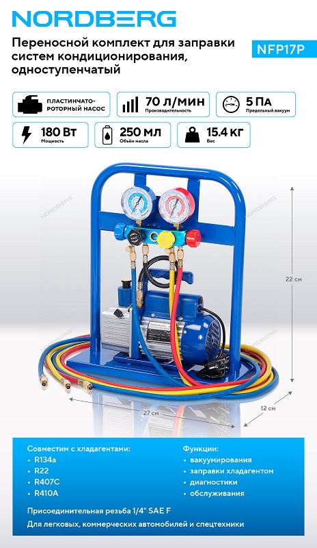 NORDBERG NFP17P — компактное и эффективное решение для профессионального обслуживания систем кондиционирования. Обеспечивает точность, надёжность и удобство в эксплуатации.