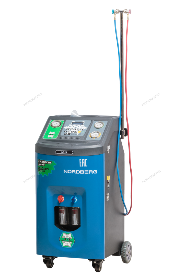 Полуавтоматическая станция NORDBERG NF15 для заправки системы кондиционирования воздухом автомобилей представляет собой устройство по обслуживанию систем кондиционирования воздуха и выполняет следующие функции: