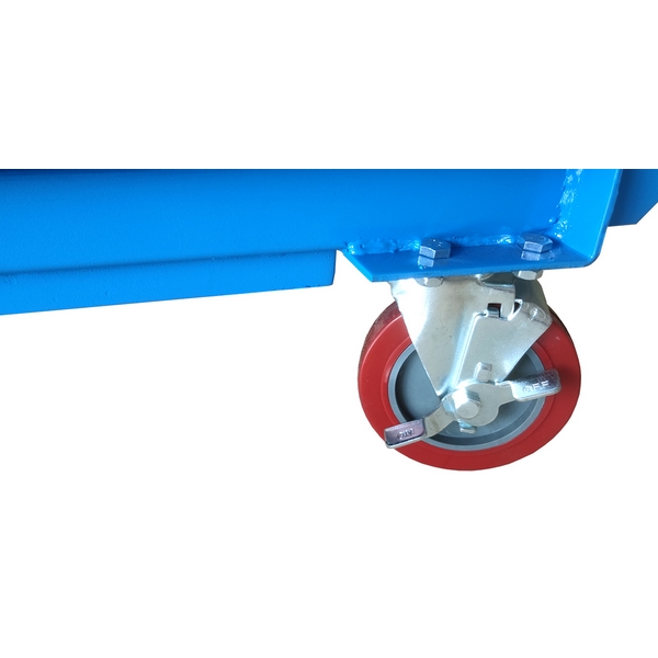 - для перемещения тележки предусмотрены колеса, два из которых поворотные и со стопорами, а также ручка.