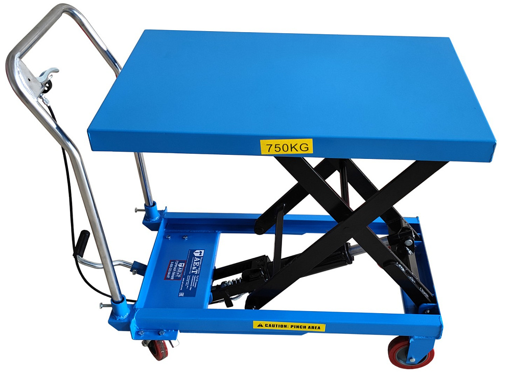 Тележка надежна и долговечна, очень проста в использовании. Для подъема груза на платформе нужно просто несколько раз надавить на педаль. Скорость и ход опускания платформы контролируется положением рукоятки.