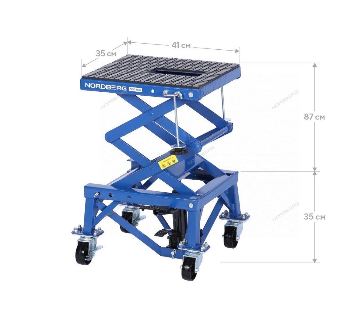 NORDBERG N3T150 — профессиональный подкатной мотоподъёмник. Применяется в мастерских, СТО и гаражах.
