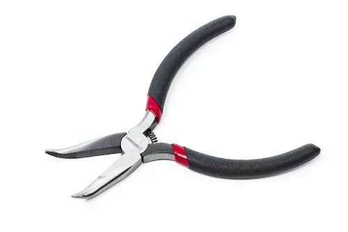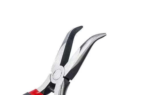 Мини длиногубцы изогнутые — слесарный инструмент для работы с мелкими деталями и комплектующими. Применяются для фиксации крепежа, загиба и выравнивания проволоки или узких пластин.