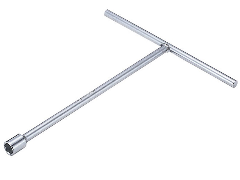 Т-образная рукоятка и удлинённая рабочая часть ключа удобны при работе с торцевым крепежом, расположенном в углублении.