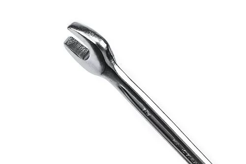 Финишная обработка Soft matt и хром никелевое покрытие комбинированного ключа обеспечивает надежную защиту от коррозии, а также надежный хват и препятствует выскальзыванию инструмента из рук. 12-гранный профиль накидной части подходит к головкам болтов и гайкам как 6-, так и 12-гранного профиля, и обеспечивает 5 градусный шаг перехвата. Специальный отгиб, в 15 градусов рожковой либо накидной части ключа позволит работать в местах с ограниченным доступом к крепежу и помогут подобраться к крепежу как с торца, так и с боку, в зависимости от места выполняемых работ.
