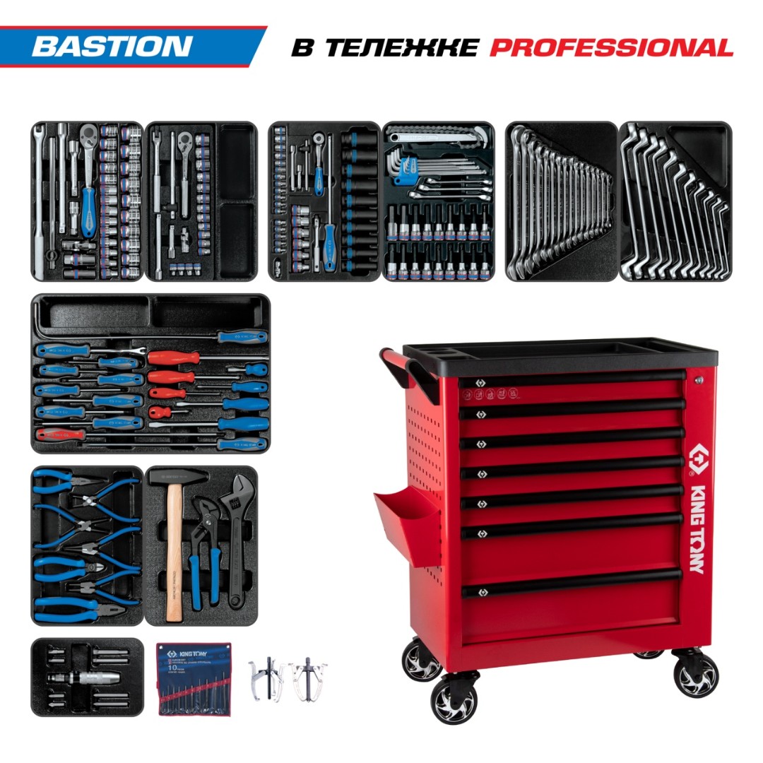 Набор инструментов 204 предмета, "bastion", в красной тележке king tony 9g38-100mrr характеристики