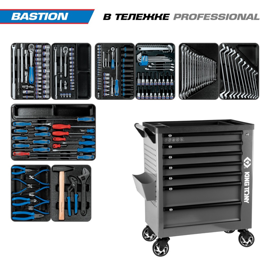 Набор инструментов 204 предмета, "bastion", в серой тележке king tony 9g38-100mrg характеристики