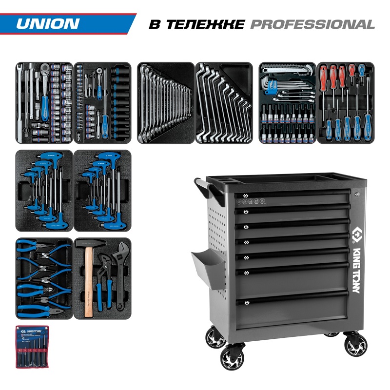 Набор инструментов 173 предмета, "union", в серой тележке king tony 9g38-000mrg характеристики