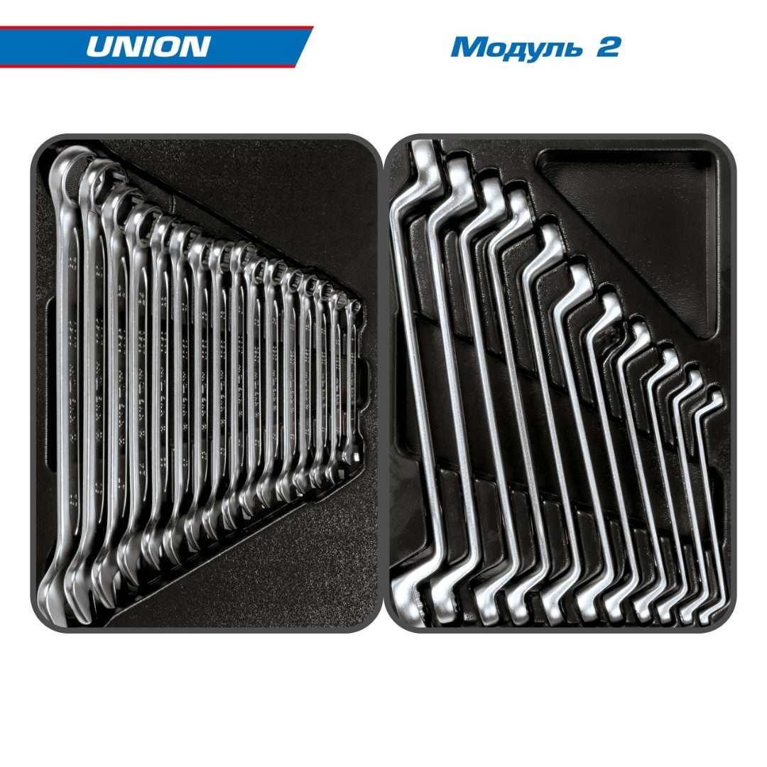 Стандартизация размеров ложементов позволяет разместить наборы на ваше усмотрение в любом варианте организации рабочего пространства – по типу, назначению или частоте использования. Вы всегда будете иметь под рукой тот инструмент или приспособление, которое вам необходимо в данную минуту, а ячейки ложементов помогут содержать набор в полном порядке.