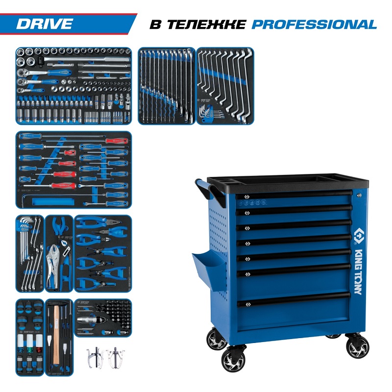 Набор инструментов 251 предмет, "drive", в синей тележке king tony 9g38-251mrvb характеристики