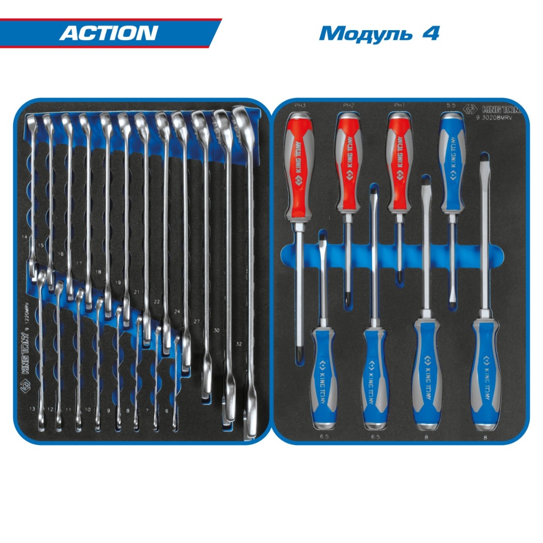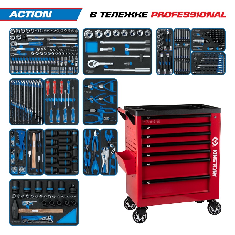 Набор инструментов 327 предметов, "action", в красной тележке king tony 9g38-327mrvr характеристики