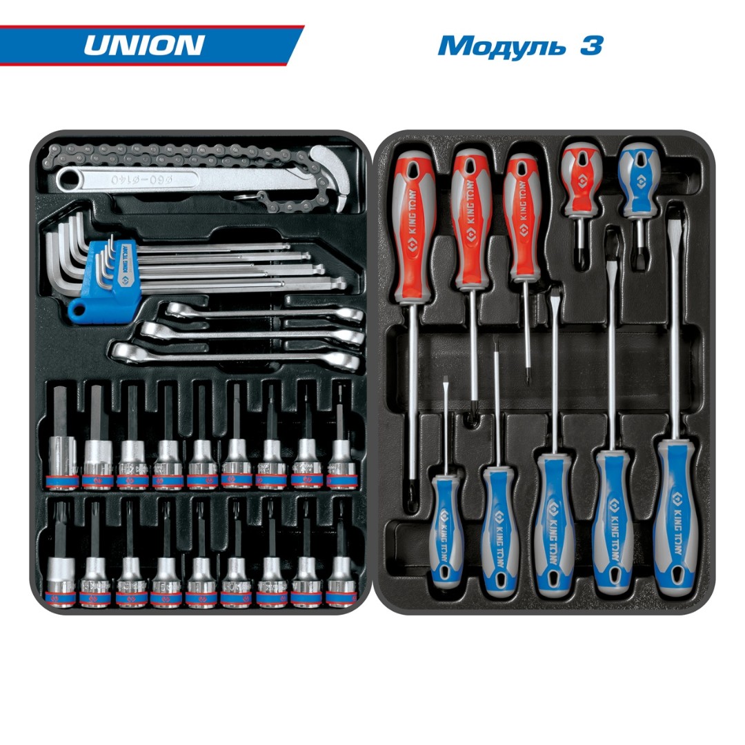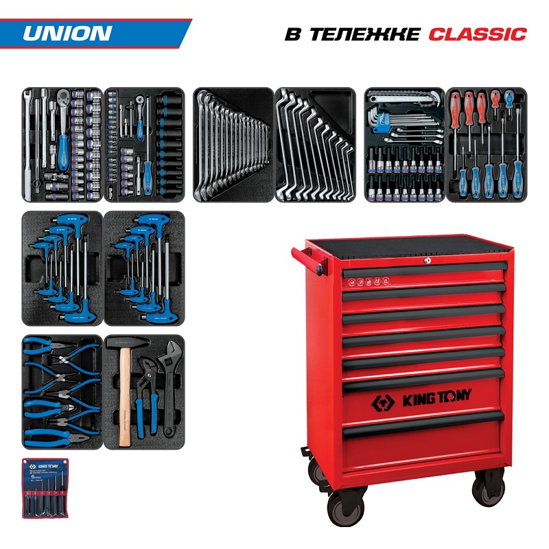 Набор инструментов 173 предмета, "union", в красной тележке king tony 934-000mr характеристики