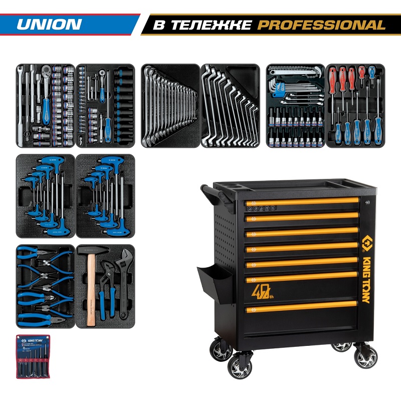 Набор инструментов 173 предмета, "union", в синей тележке king tony 9g38-000mrb характеристики