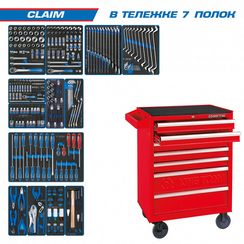 KING TONY Набор инструментов CLAIM в красной тележке, 286 пр.934-286MRV характеристики