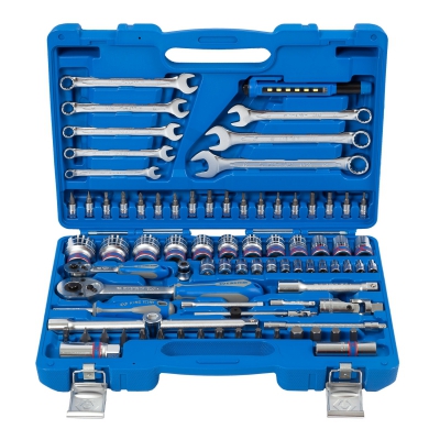 Универсальный набор ручного инструмента KING TONY 7582MR, состоящий из 83 предметов и размещенный в удобном переносном кейсе, применяется в небольших мастерских, выездными бригадами, частными мастерами при проведении ремонта автомобилей и другой техники, различных конструкций.