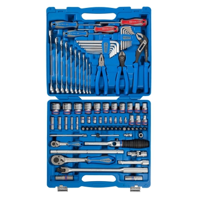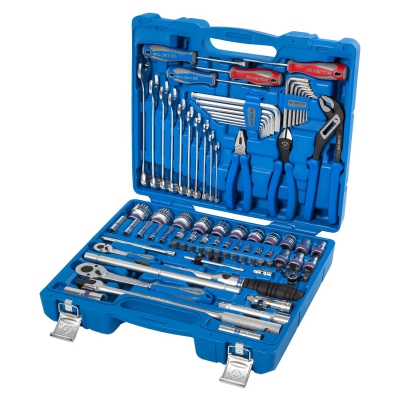 Универсальный дюймовый набор ручного инструмента King Tony 7587SR01, состоящий из 87 предметов и размещенный в удобном переносном кейсе, применяется в мастерских, выездными бригадами, частными мастерами при проведении ремонта и технического обслуживания автомобилей, мотоциклов, водной и другой техники.
