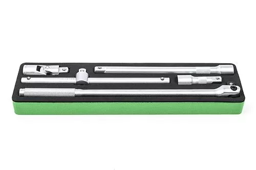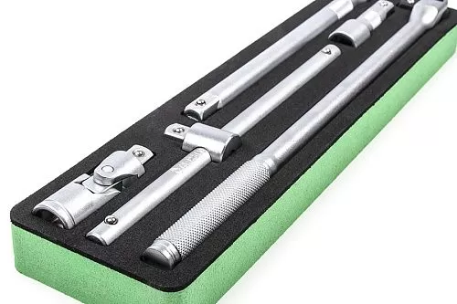 Удлинители применяются для удлинения рабочей части инструмента при работе в труднодоступных местах. Кардан шарнирный служит для передачи крутящего момента на торцевые головки. Т-образный вороток применяется в качестве рычага для заклинивших или перетянутых гаек. Данный вид инструмента применяется для выполнения любых видов работ с крепежом - как дома, в гараже, в авто-слесарной мастерской, станции технического обслуживания авто, мото и другой техники, так и на производстве.
