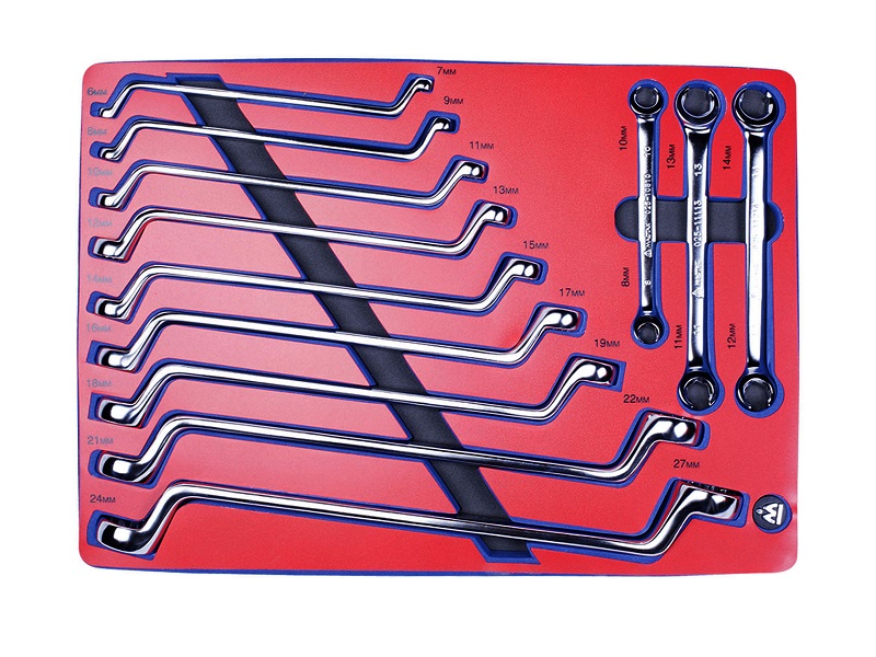 Набор инструментов 12 предметов ключи накидные и разрезные Мастак 5-23112 в ложементе из материала EVA предназначен для комплектации передвижных инструментальных тележек или слесарных верстаков при создании индивидуальных рабочих мест на станциях технического обслуживания автомобилей и других предприятиях, занимающихся обслуживанием и ремонтом различной техники.