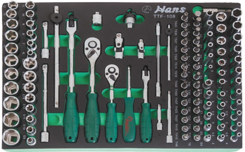 Набор головок c аксессуарами 1/4" и 3/8" Hans TTF-108, 108 предмета в ложементе.