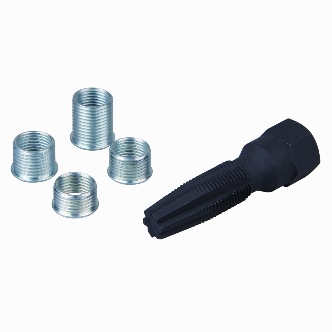 Набор предназначен для восстановления деформированной резьбы колодцев свечей зажигания с резьбой М14х1,25. Метчик служит для нарезки резьбы под установку футорки нужной длины.