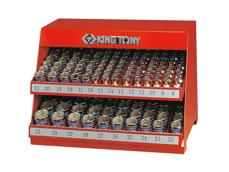Стенд с ударными глубокими торцевыми головками 1/2", 8-32 мм, серия 4435М, 166 пр. KING TONY 4466MP
