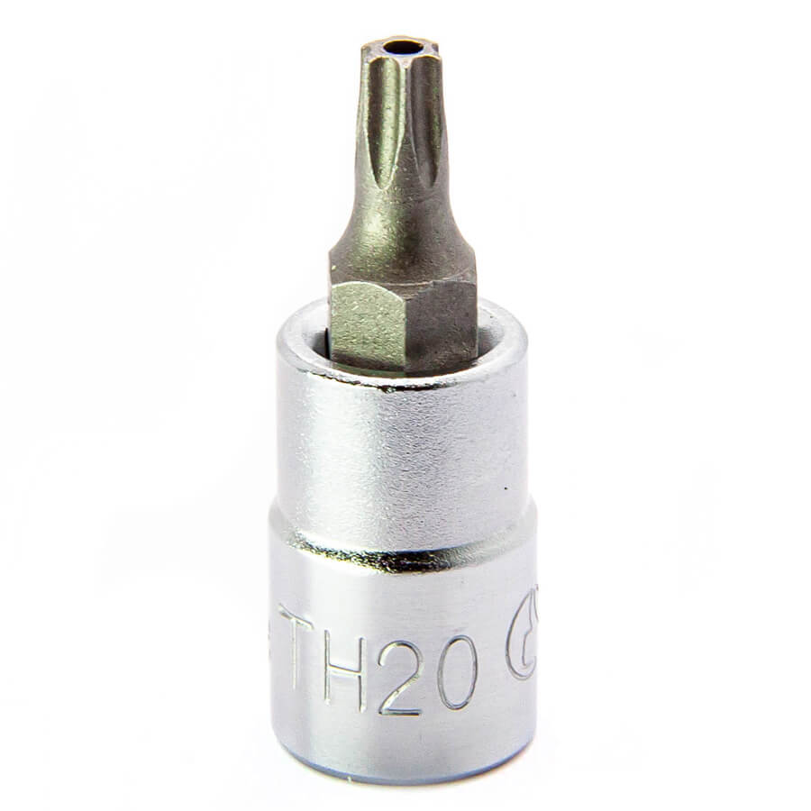 Короткая торцевая вставка с отверстием 1/4" TORX ТH20 Hans 2025TH20
