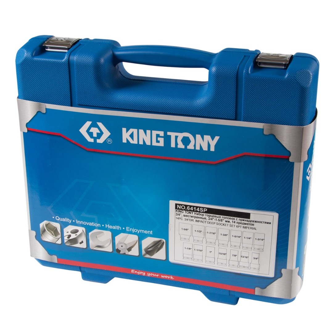 Набор ударных глубоких торцевых головок 3/4", шестигранные, 3/4"-1-5/8", 14 предметов king tony 6414sp характеристики