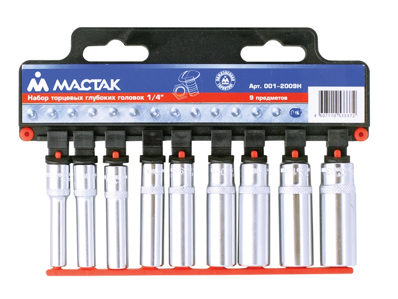 Набор торцевых глубоких головок 1/4", 5-13 мм, 9 предметов МАСТАК 001-2009H характеристики