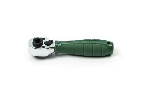 Трещотка с храповым механизмом отличается простотой и удобством в применении. Трещоточный механизм ключа позволит работать им, не отрывая от закручиваемой детали. Резиновая накладка на ручке не позволяет инструменту скользить. Имеет флажок реверса. Без быстрого сброса.