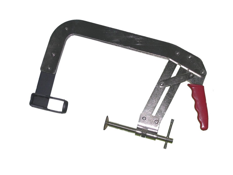 Фиксация струбцины в необходимом положении позволяет освободить руки для удобства демонтажа стопорных сухарей клапана.