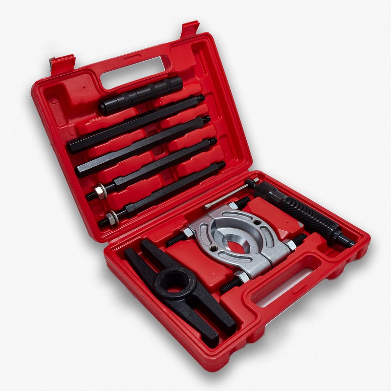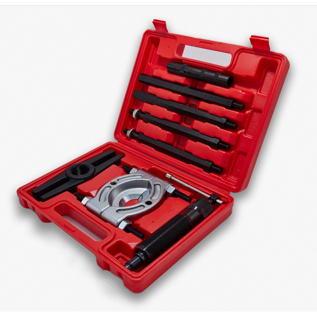 Съемник гидравлический с сепаратором ST009 часто применяется в автосервисах, на СТО и в др. местах, где есть необходимость съема нагруженных деталей транспорта, находящихся на расстоянии до 420 мм от опорной поверхности. Размер деталей варьируется от 75 до 105 мм. Захваты повышенной твердости (HRC 42-45) обеспечивают приспособлению продолжительный эксплуатационный срок и низкий уровень износа. Детали тянущейся части из углеродистой стали гарантируют его отличную работоспособность. Съемник поставляется в удобном пластиковом чемодане с ручкой, который занимает мало места и прост в транспортировке и хранении.