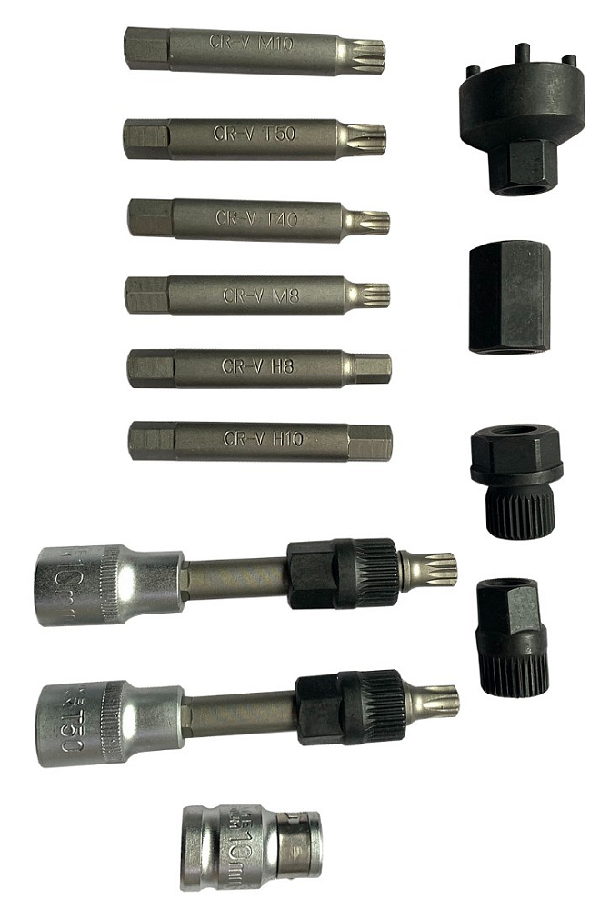 Съемник шкива генератора ТА-А1079 – это набор инструментов из 13 предметов. С его помощью можно легко снять даже перетянутый шкив.